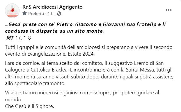 Evangelizzazione diocesana 2024 Eremo San Calogero  |